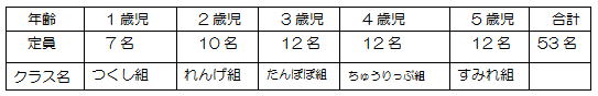 - 園長1名 事務員 1名 主任保育士1名 保育士7名