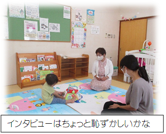 始めは「なにして遊ぼうかな?」とキョロキョロしていたお友だち・・・ママの側でおもちゃで遊んだり園長先生によるインタビューに参加してくれていましたよ。