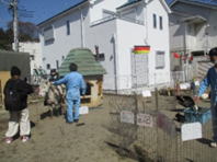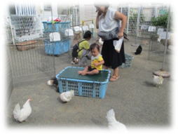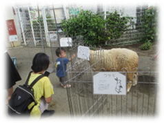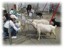 30分ごとの入れ替え制で行ないました。ひよこやモルモット・うさぎなどに積極的に触ったり、ひつじややぎに餌をあげて楽しんでる子や少し怖いなと遠巻きに見ている子などお子さんによって反応は様々・・・