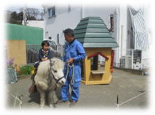 遊びに来てくれたお友だちの中には、ポニーの乗馬に挑戦する子もいました。楽しんでいただけたかな?
