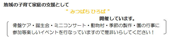 次回のみつばちひろばは、講師をお招きして行なう「リズム遊び(対象年齢6か月から~1歳未満)」になります。音楽に合わせて親子で身体を動かして遊びましょう!