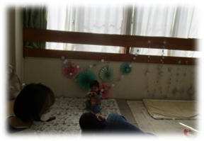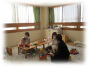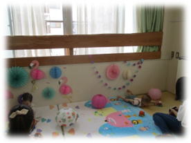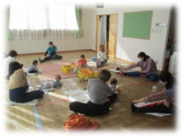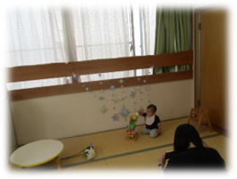 ねんねのお子さんたちには、ママのそばに布団をご用意し、動き回れるお子さんは室内のおもちゃや絵本を自由にとり遊んで過ごしました。