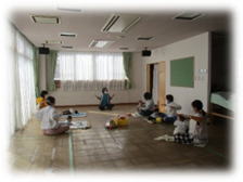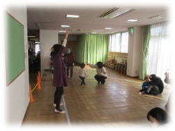 本日のみつばちひろばでは、講師をお招きして行う「リズムあそび」を行いました。