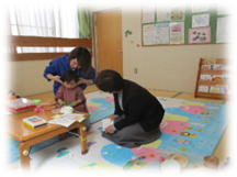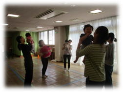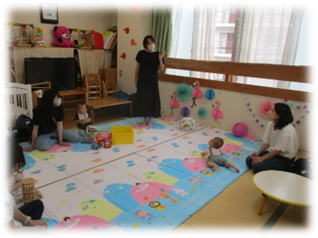 本日のみつばちひろばには、5組の方々が遊びに来てくださいました。ママの抱っこでたくさん身体を動かして遊びました。