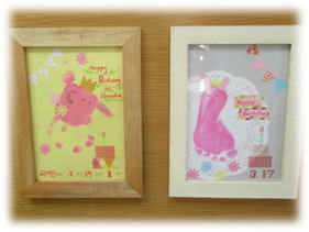 手形・足形アート制作は、「じっくり制作するのが楽しい」「リビングに飾って楽しんでいます」などご好評いただいております!フレームや台紙・飾りをご用意していますので、保護者・お子さんが選んで自分だけのオリジナル作品を作りましょう♡