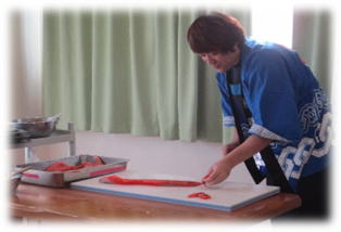 11月9日に鮭の解体を板前さんが行い、全員で見ました。