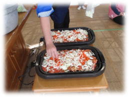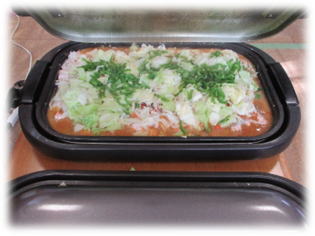 「ホットプレートに油をひいて並べ、お味噌をかけて・・・」