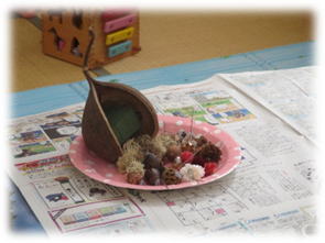 木の実や枯れ葉が落ちてくる季節になりました。そんな「秋」を感じていただけるようなあそびの時間を過ごしていただきました。