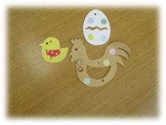 今年度最初のみつばちひろばは、「コロコロたまごのモビール制作」を行ないました。マーカーでコーヒーフィルターに描き水を含ませるとにじみ絵が出来ます。たまごのモチーフにシールを貼ったり、2歳のお友だちはハサミにも挑戦してくれていましたね!