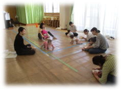 本日のみつばちひろばには、6組の方々が参加してくださいました。ママ達は、理学療法士の山崎先生に骨盤チェックをしていただき身体をほぐしていきました。お子さん達は、途中で寝ちゃうお友だちもいたり、ハイハイで気になるおもちゃのところに近付いてみたり、ママの側で過ごしていましたよ。なかなか時間がとれないかもしれませんが、ご自宅でもストレッチしてみてくださいね。