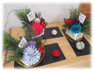 参加してくださったのは、1歳未満のおこさんをお持ちのママ達でした。おこさんは、ママが制作を楽しんでいる間、おもちゃで遊んで過ごすのですが机の上の「もの」に興味があり、つかまり立ちで「なんだろう!」「見せて、触らせて」といった様子でした。とっても素敵な作品!お子さん達は初めてのお正月☆待ち遠しいですね。ご参加ありがとうございました。