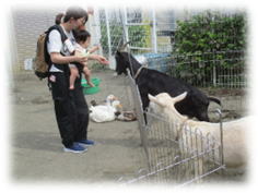まだ歩けないお友だちはママの抱っこで動物に餌をあげたり、触ってみたり、歩けるお友だちは自分から動物に餌をあげたり、触ってみたり・・・