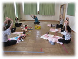 ママ達がストレッチを行っている間、お子さんたちはおもちゃで遊んでいたり、ママの傍でのんびり過ごしていました♪