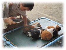 飼育員さんからのお話を聞いた後、ふれあいの時間へ。